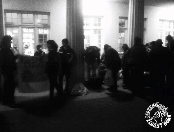 27 grudnia, jak w każdą niedzielę, około g. 17-tej ma Dworcu Zachodnim w Poznaniu pojawiła się wesoła gromadka kucharzy kolektywu Jedzenie Zamiast Bomb. Zebranym gościom serwowano barszcz (buraki, marchew, kapusta, seler, cebula, fasola, olej, koncentrat pomidorowy) z ziemniakami. Na deser podano piernikowy F16 z bombkami. Samolot z uzbrojeniem został wnet połamany i rozdany obecnym. Jedzenie Zamiast Bomb życzy wszystkim mniej bombek nad głowami więcej na choince lub pod urzędami. Do zobaczenia w nowym roku na ulicach NASZEGO miasta.