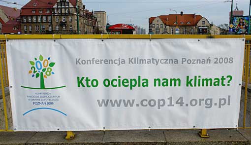Na ulicach Poznania pojawiły się banery z hasłami nawiązującymi do mającej się rozpocząć na początku grudnia Konferencji ONZ ("Kto ociepla nam klimat?", "Co wydarzy się 6 grudnia?", "Szczyt klimatyczny - dowiedz się więcej") oraz stroną interentową www.cop14.org.pl. Po wpisaniu adresu w przeglądarce ukazuje nam się strona bliźniaczo podobna do oficjalnej strony Szczytu Klimatycznego (www.cop14.gov.pl), jej twórcy nie pozostawiają jednak wątpliwości co do jej charakteru: "Konferencja Klimatyczna ONZ jest jedną z umów międzynarodowych, które mają dawać pozory walki z globalnym ociepleniem klimatu, chroniąc jednocześnie prawdziwą przyczynę kryzysu: system społeczno-ekonomiczny oparty na bezwzględnej eksploatacji zarówno przyrody jak i ludzi" - możemy przeczytać na stronie.