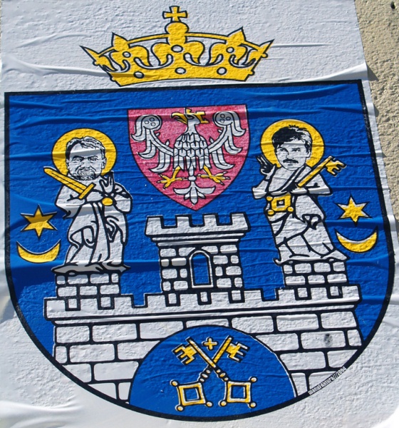 Ryszard Grobelny i Jan Kulczyk jako święci Piotr i Paweł - taki herb Poznania można zobaczyć dziś na ulicach miasta. Swoją wersję kampanii promocyjnej miasta w ten sposób ogłosili anarchiści. Plakaty rozkleili między Mostem Teatralnym a Placem Wolności.